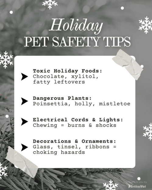 Decorating, hosting, and festive treats make the season bright — but some holiday hazards can put your pet at risk. Check out the graphic below for the top 4 things to keep out of paw’s reach!